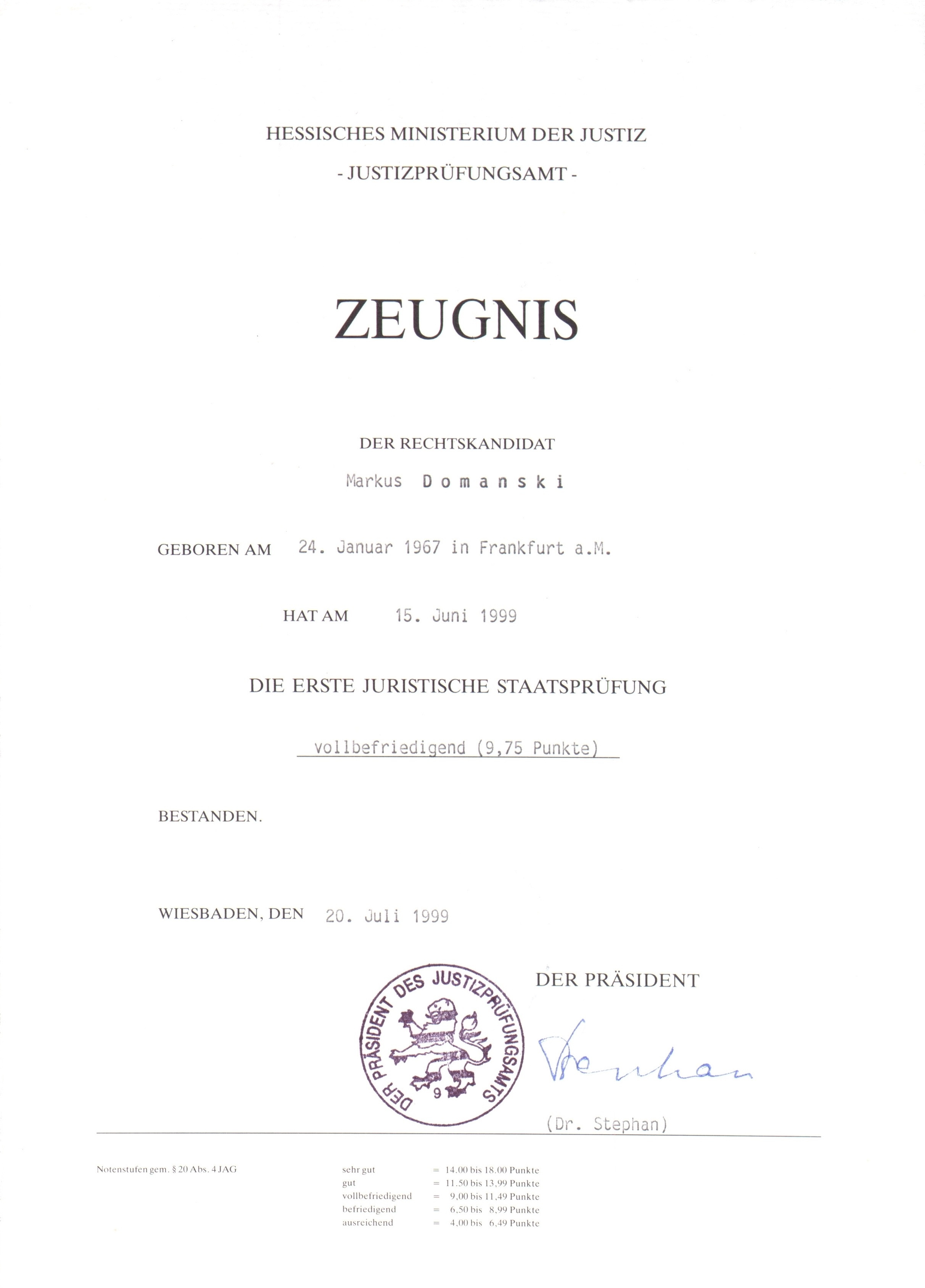 Markus Domanski wurde 1967 in Frankfurt am Main geboren und ist in Karben aufgewachsen. Er studierte Rechtswissenschaften an der Johann-Wolfang-Goethe Universität. Das Referendariat absolvierte er im OLG-Bezirk Frankfurt am Main.